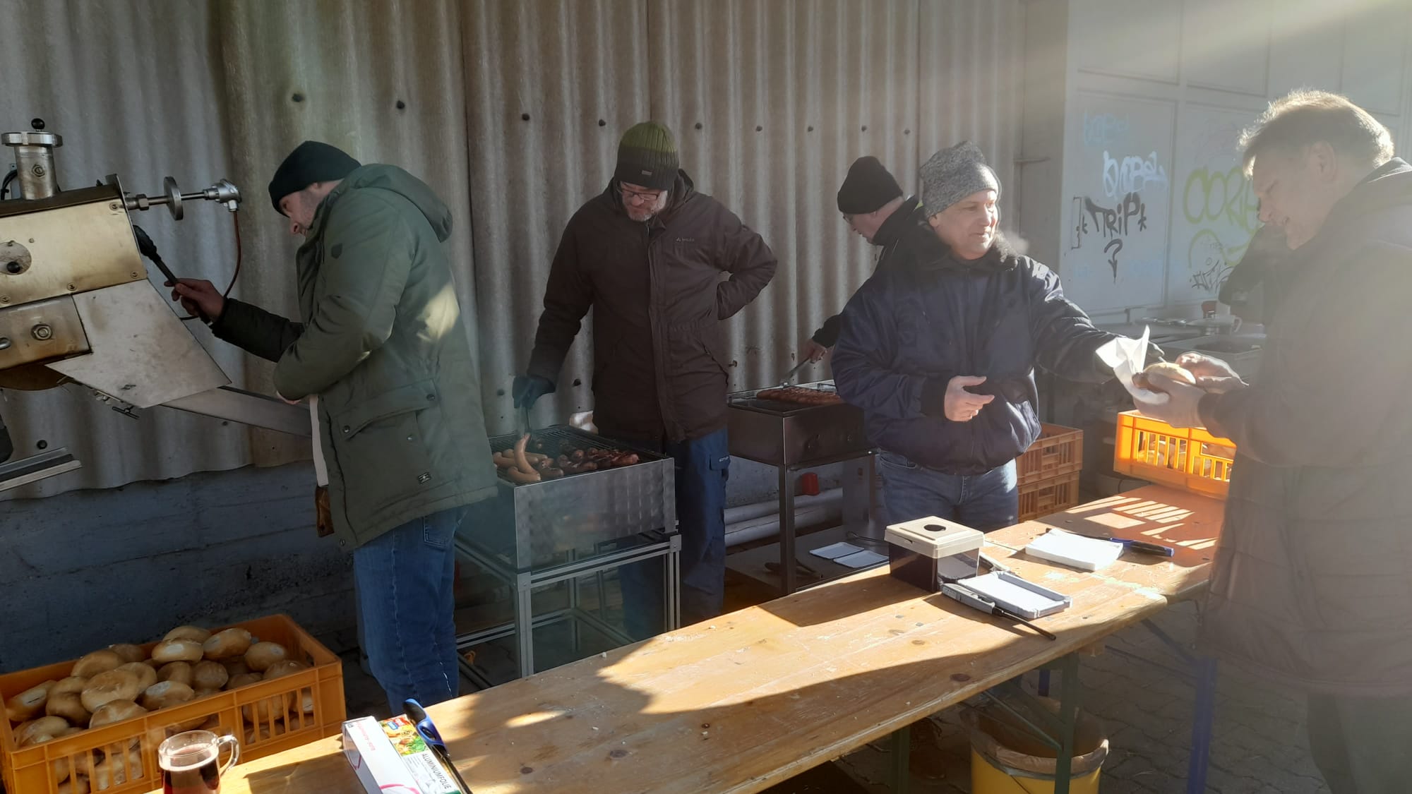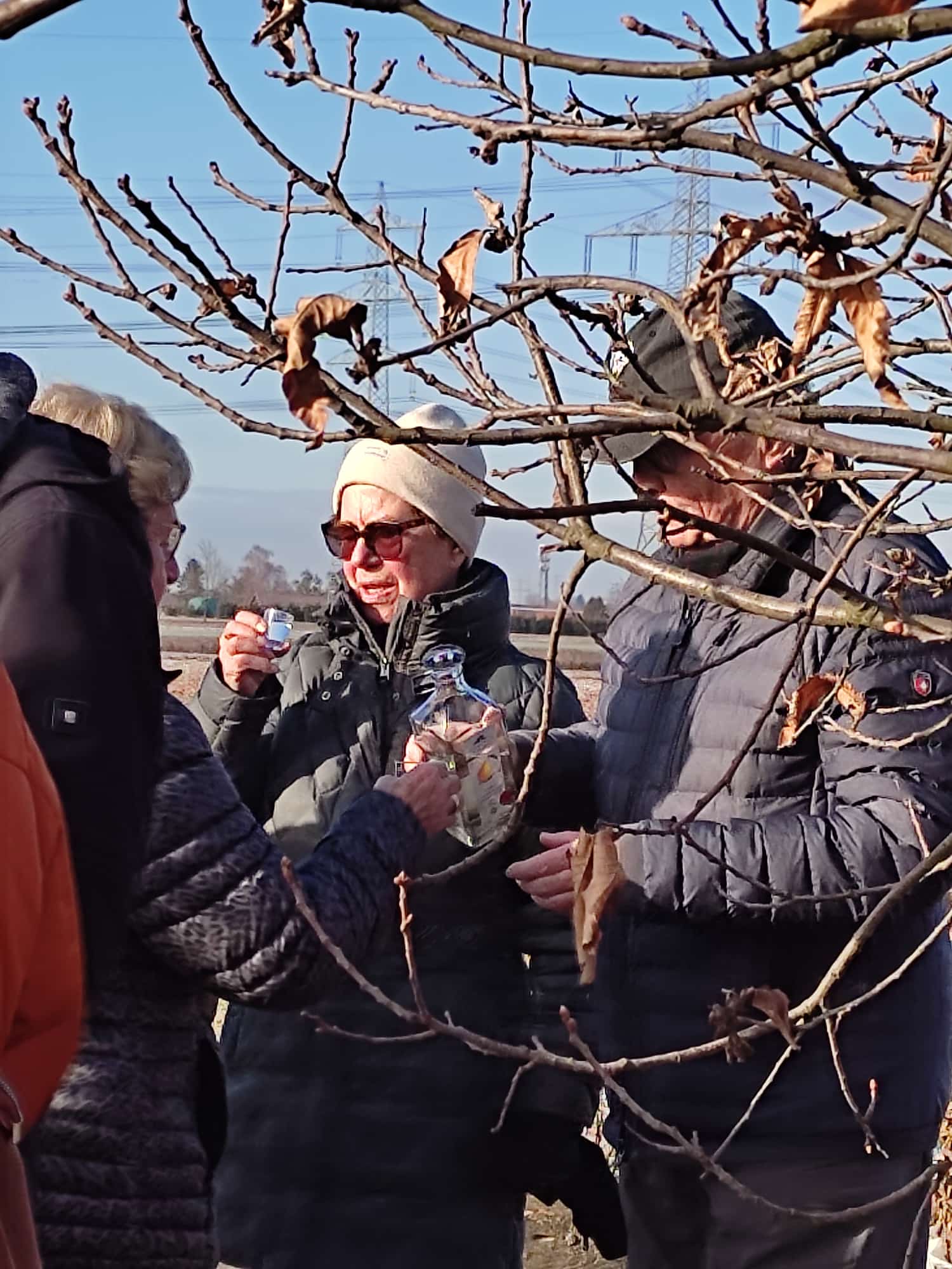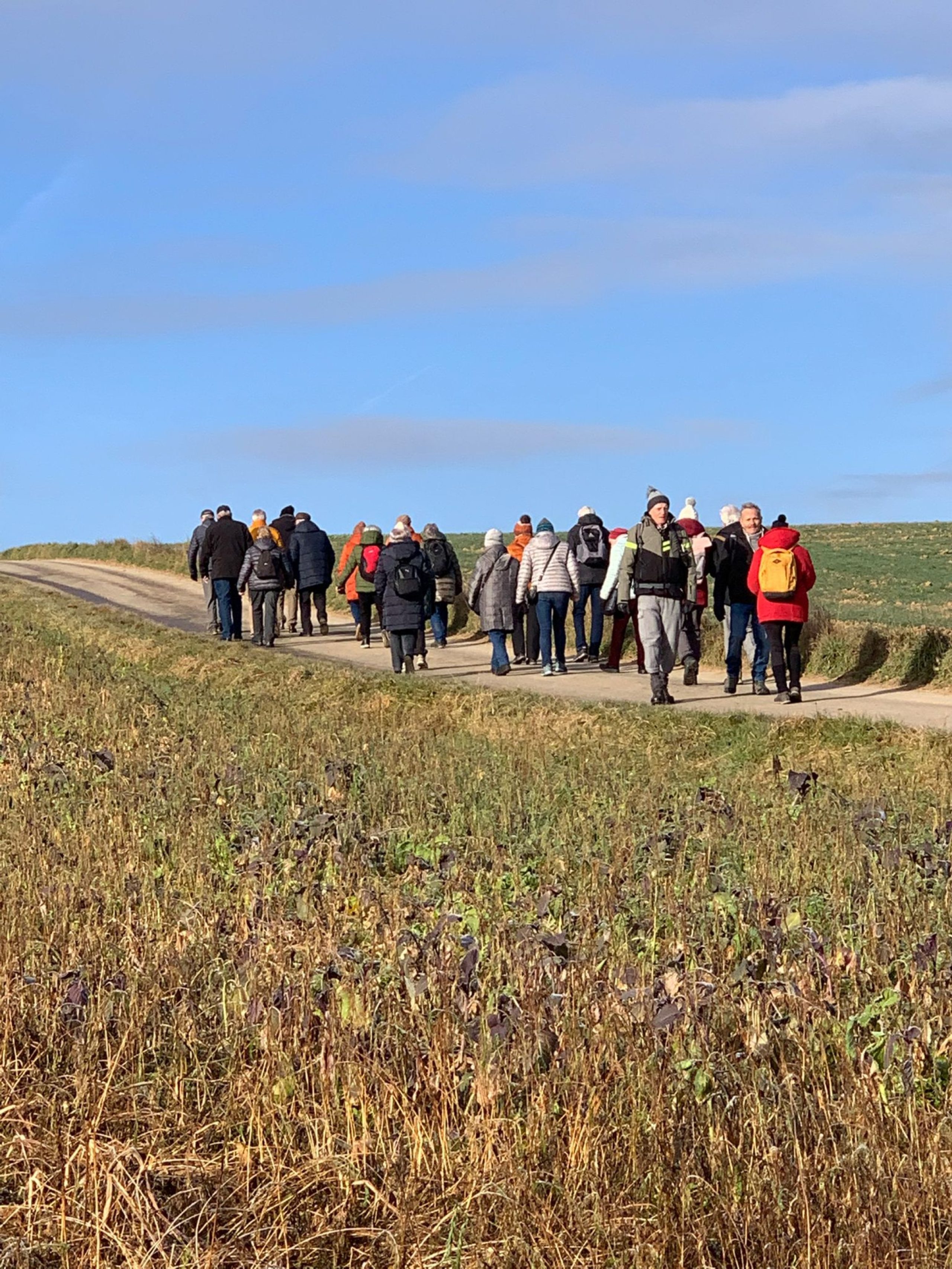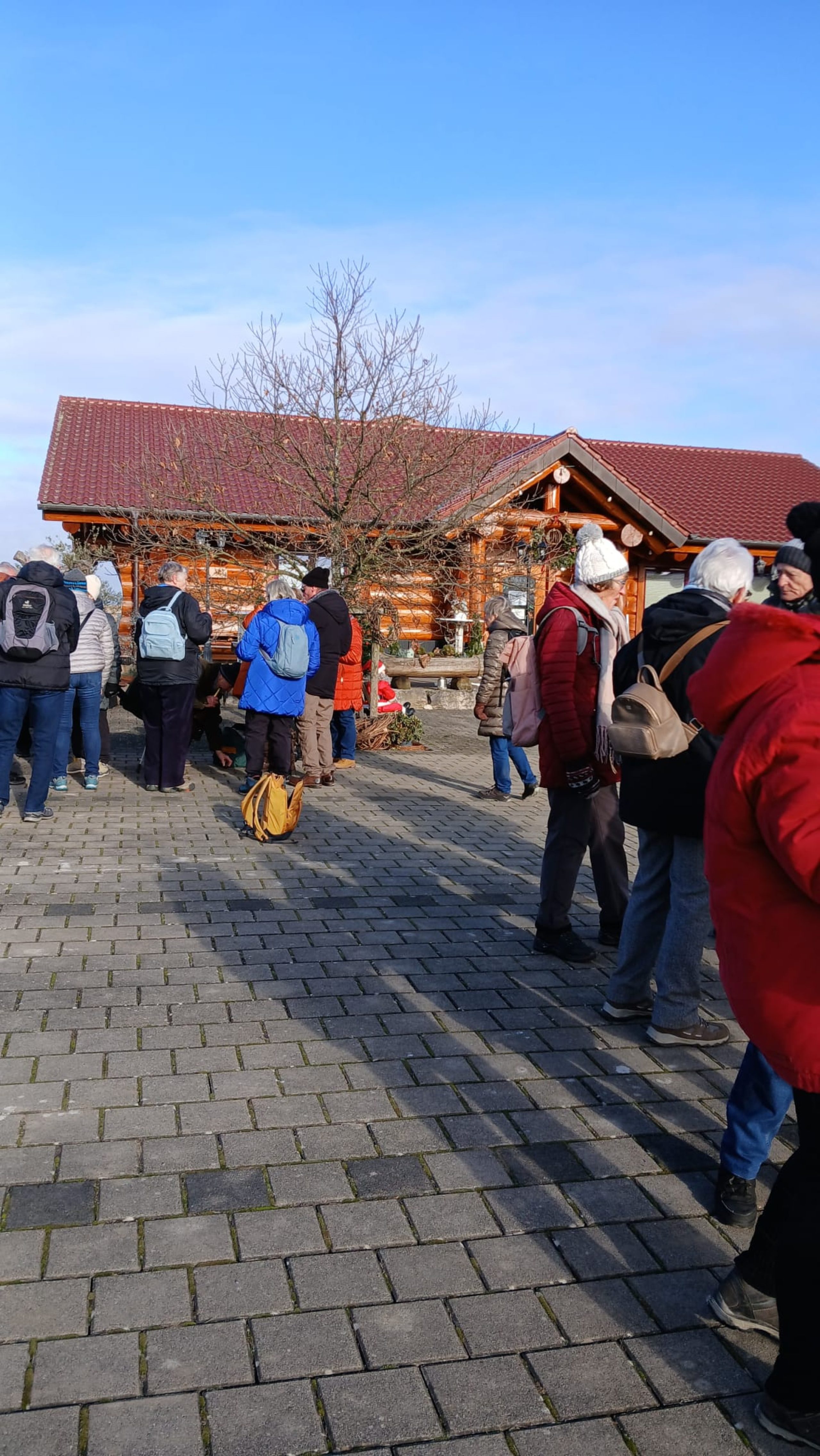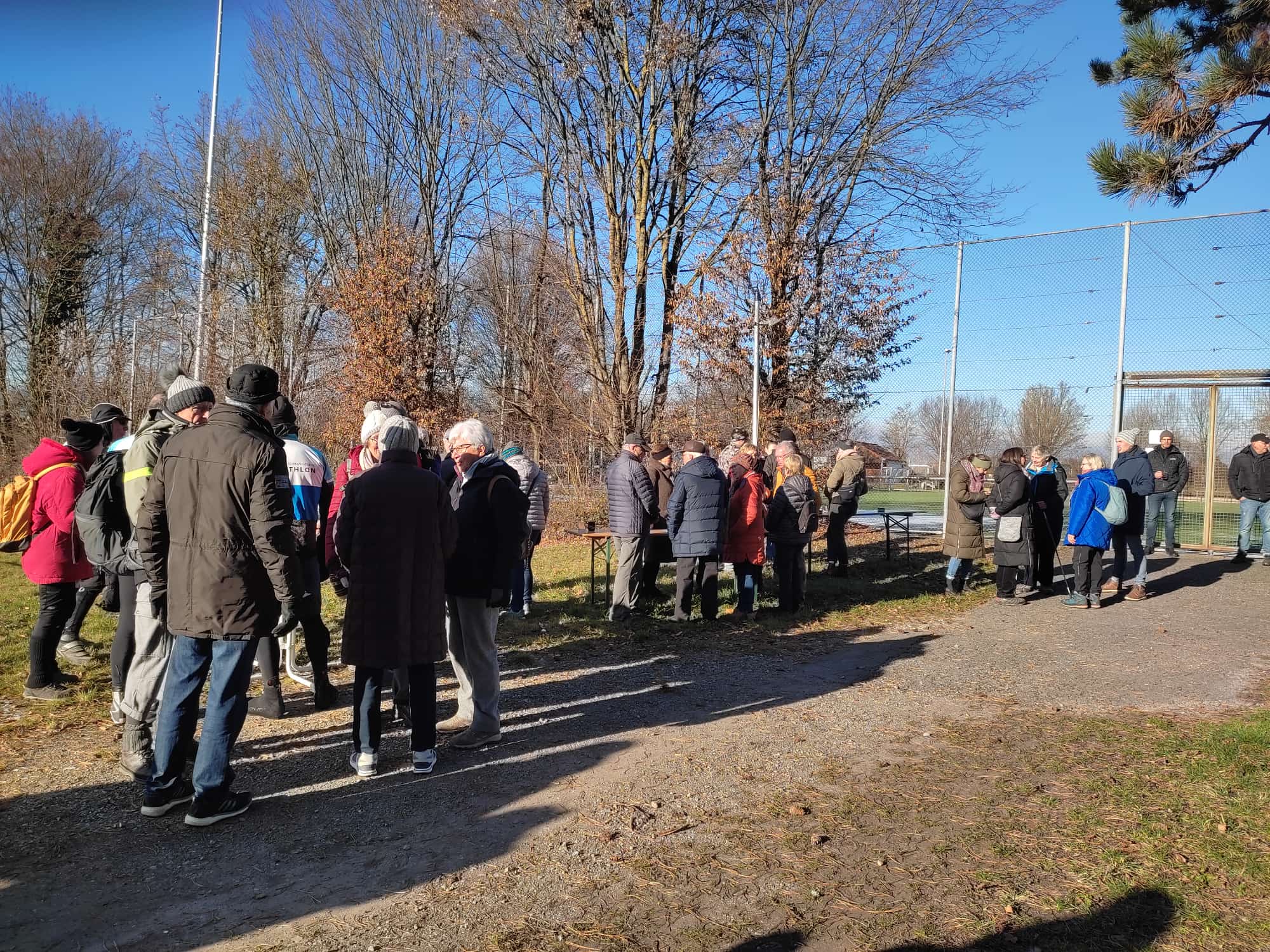 25 Wanderfreunde aus Remseck, Hohenacker und Weinstadt trafen sich am Silvester-Vormittag in Hochdorf zur Wanderung zum neuen Festplatz in Poppenweiler. Nach 3 km mit einer Trinkpause beim Blockhausbesen trafen wir um 12 Uhr auf der Ochsenfestwiese in Poppenweiler zum Glühwein- und Bratwurstfest noch weitere 6 unserer Wanderfreunde unter den rund 100 Festgästen.