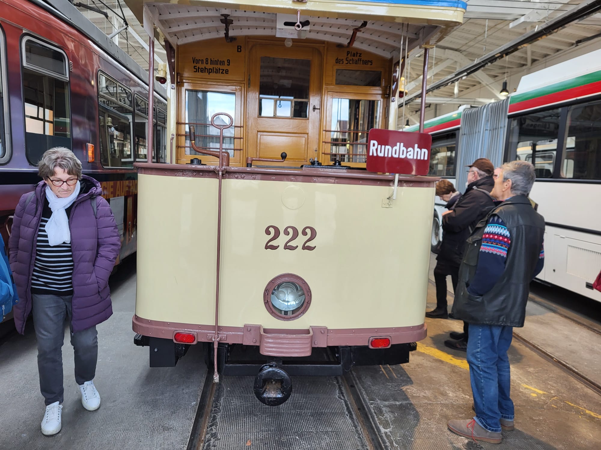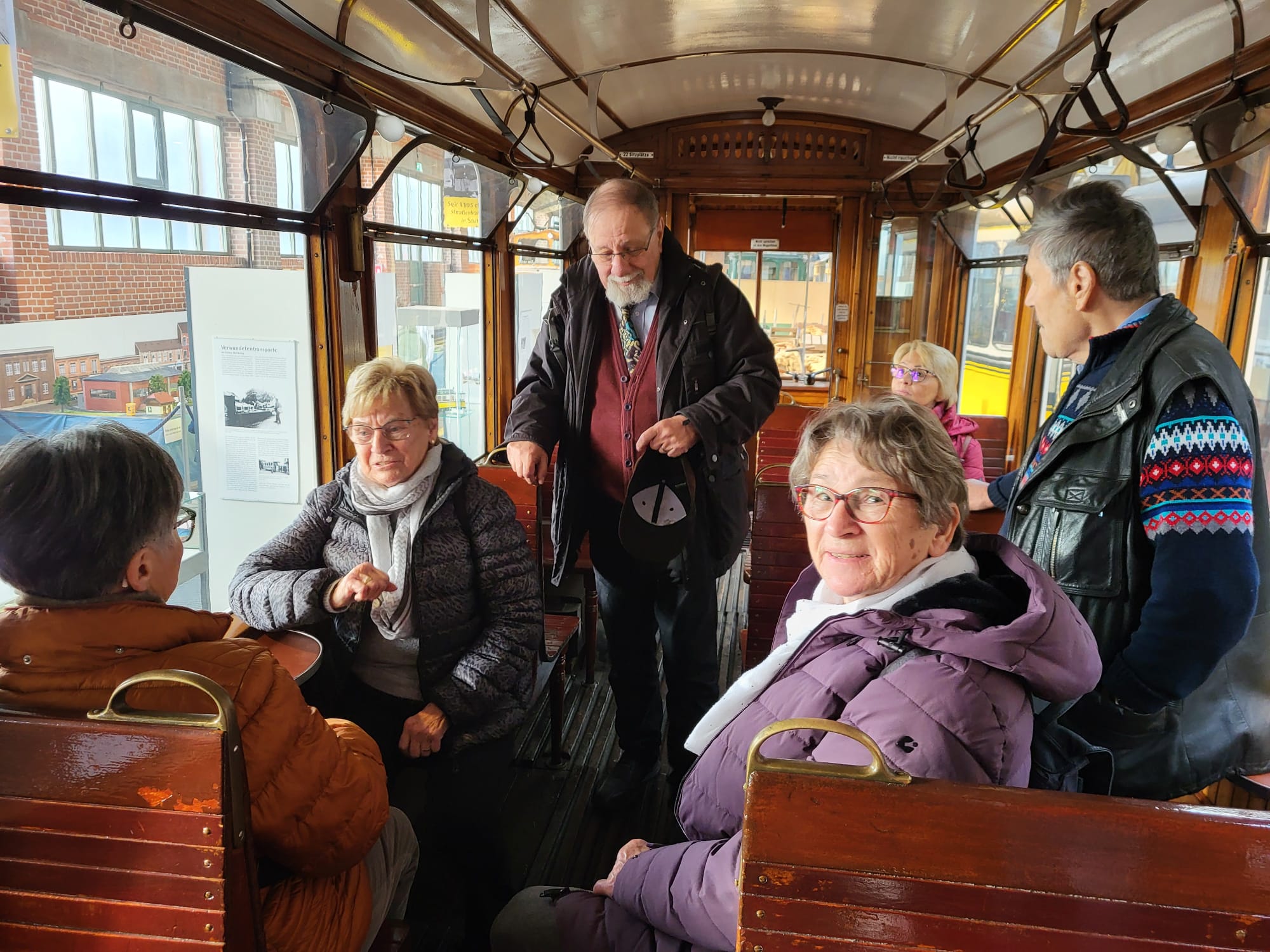 Unser Armin führte uns mit launigen Worten über Dinge, die er als Straßenbahn Fahrer zur damaligen Zeit erlebt hatte. Er hat damit Fragen aufgeworfen und hatte die Schar voll begeistert. Mit einem bestimmten Vierkantschlüssel öffnete er für uns so manchen Wagen zur inneren Einsicht.