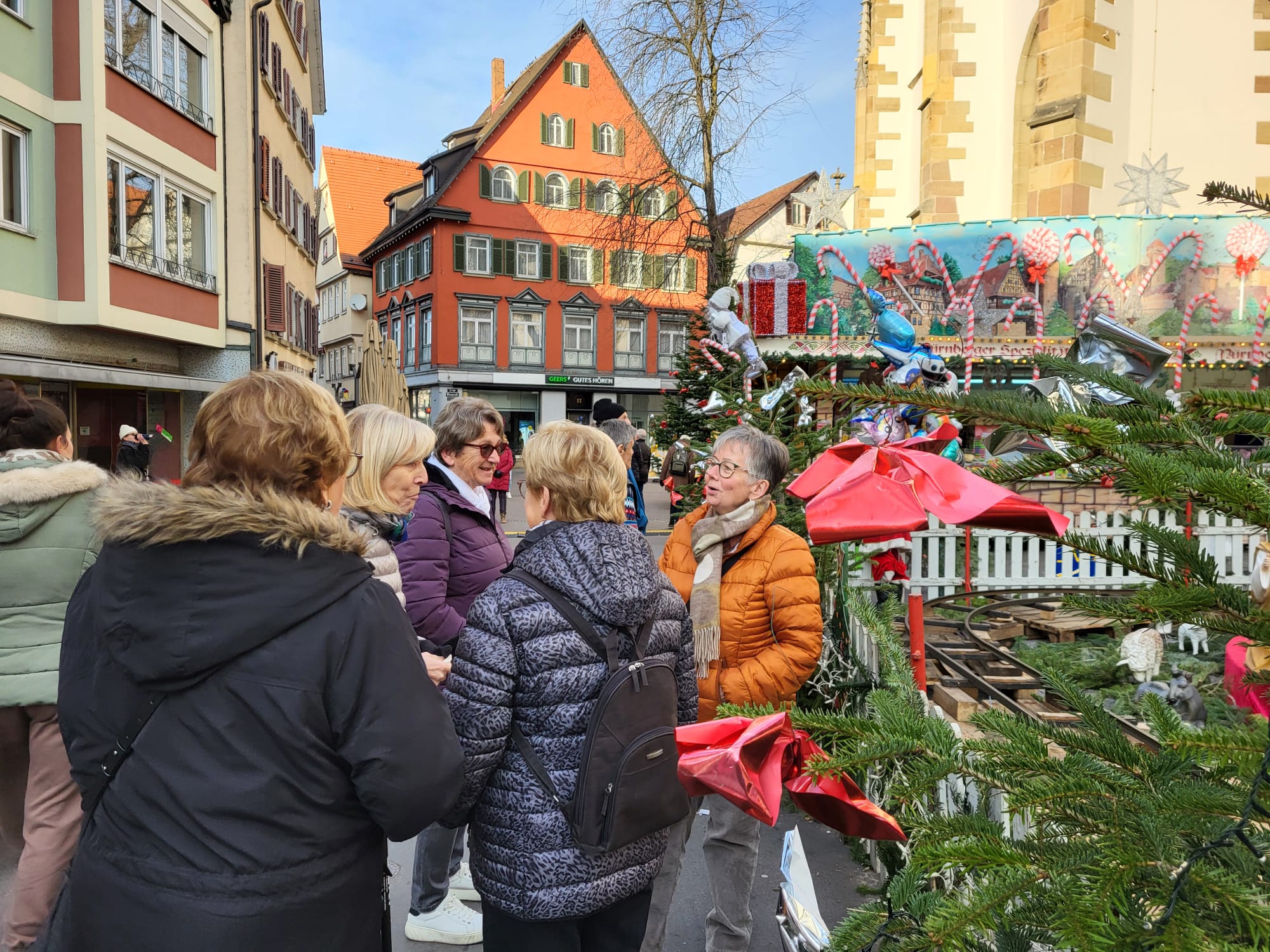 Nach einem guten Essen und einem besonderen Weihnachtsbier gestärkt führte uns Ursel gekonnt durch die weitere Fußgänger Zonen vorbei am Klösterle mit Erzählungen unter anderem über Thaddäus Troll Platz und vorbei beim Entenklemmer.