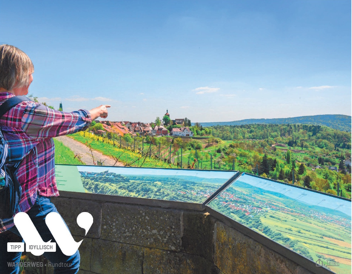 Barrierefreies Vergnügen mit atemberaubender Panoramasicht! Auf diesem, dem ältesten Weinberg in Winnenden, wird bereits seit dem 14. Jahrhundert Wein angebaut. Mehr über die Geschichte des Weinbaus können Sie den aufschlussreich gestalteten Informationstafeln entnehmen, die den gesamten Weg säumen. Dazu gehört auch eine große Panoramatafel mit Farbfotos.